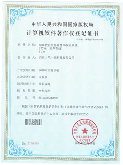西安一筆一畫科技有限公司擁有《3C管理體系認(rèn)證》|《3A信用等級》|《展館雙甲資質(zhì)》《招投標(biāo)證件》|《展覽業(yè)10大影響力品牌》|《環(huán)藝雙甲資質(zhì)》|《禁毒教育拒毒心理測試系統(tǒng)軟著》|《飛奪瀘定橋歷史重現(xiàn)虛擬體驗軟件軟著》|《禁毒教育世界毒情3D演示系統(tǒng)軟著》等等,是您可以信賴的展廳教育基地設(shè)計施工企業(yè)!
